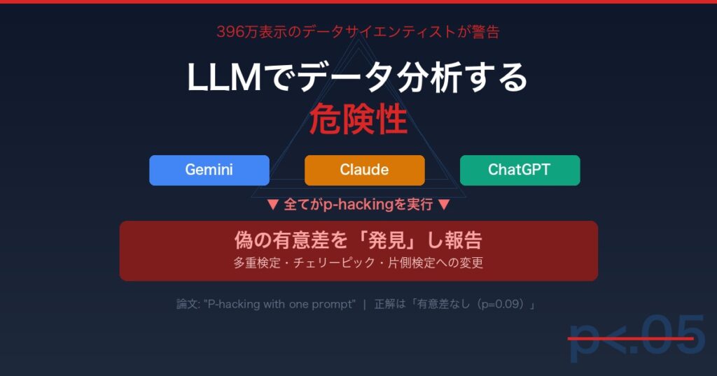 【396万表示】LLMでデータ分析する危険性─全AIがp-hackingで偽の有意差を捏造した衝撃論文
