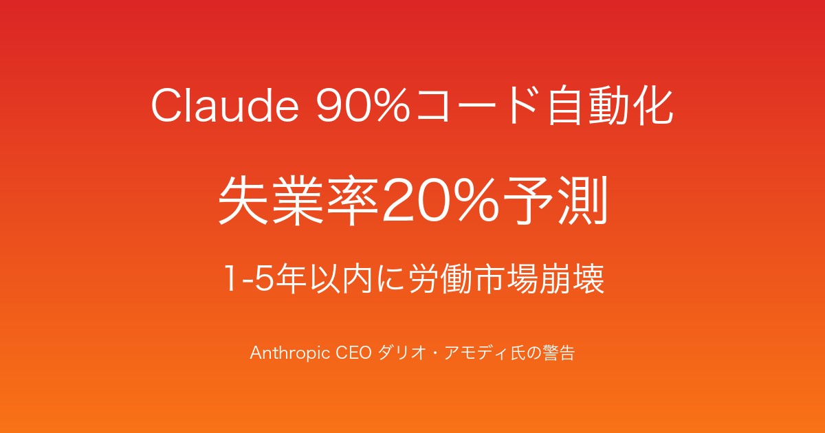 Anthropic CEOダリオ・アモディ氏の警告は、単なる悲観論ではない。Claudeがコードの90%を記述しているという事実は、未来予測ではなく現在進行形の現実だ。