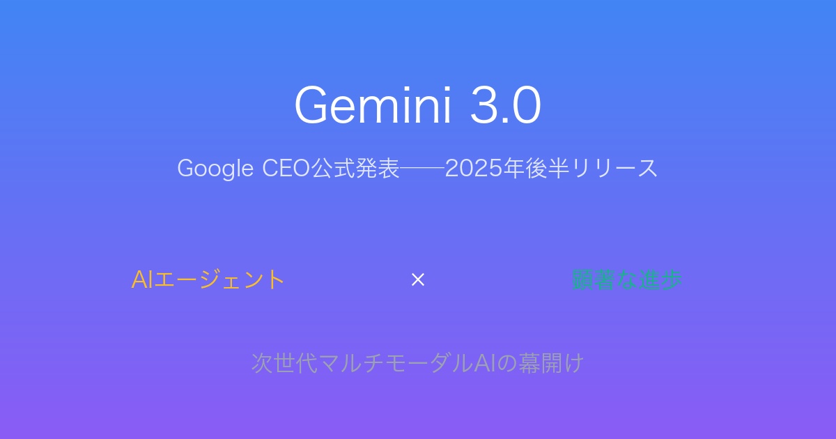 準備を始めましょう:Gemini 3.0のリリースまで残り数週間。今から現行バージョンで操作に慣れ、自動化したい業務フローを整理することが、AI新時代で優位に立つ第一歩です。