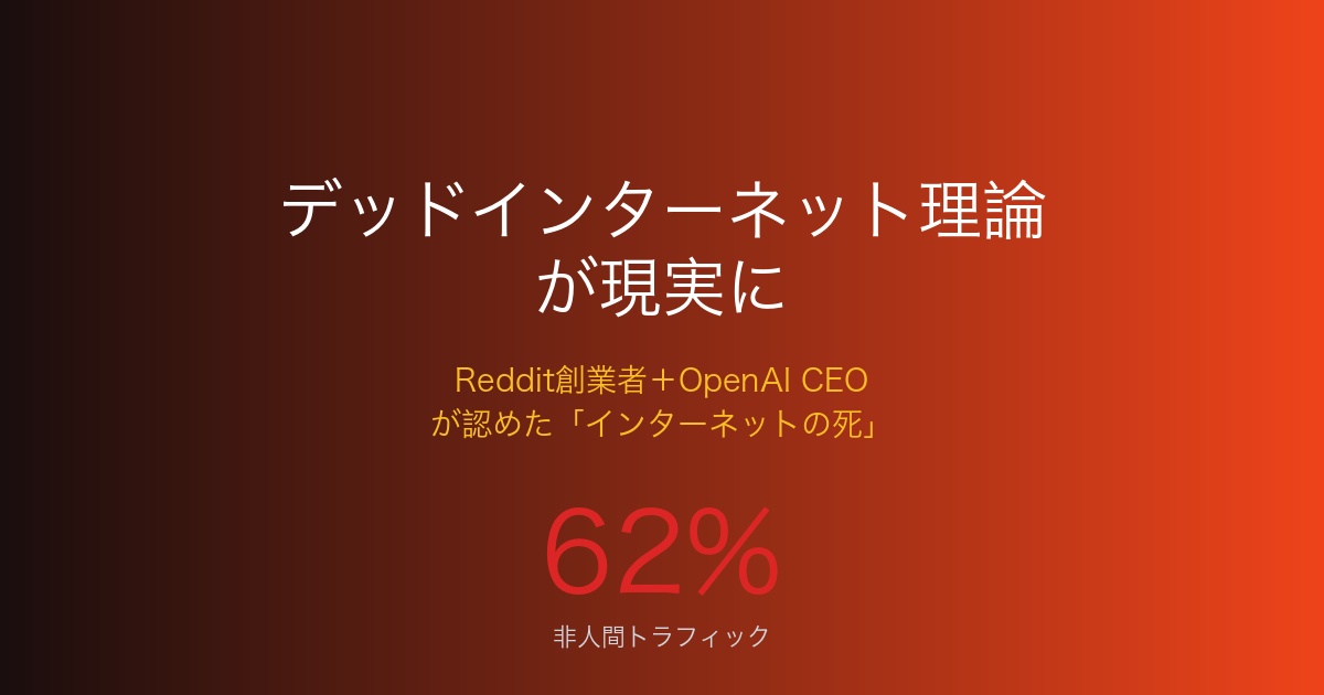 Redditの共同創業者Alexis Ohanian氏とOpenAIのCEOSam Altman氏という、インターネット史を形作った2人の巨人が、相次いで「デッドインターネット理論」の現実化を認めました。