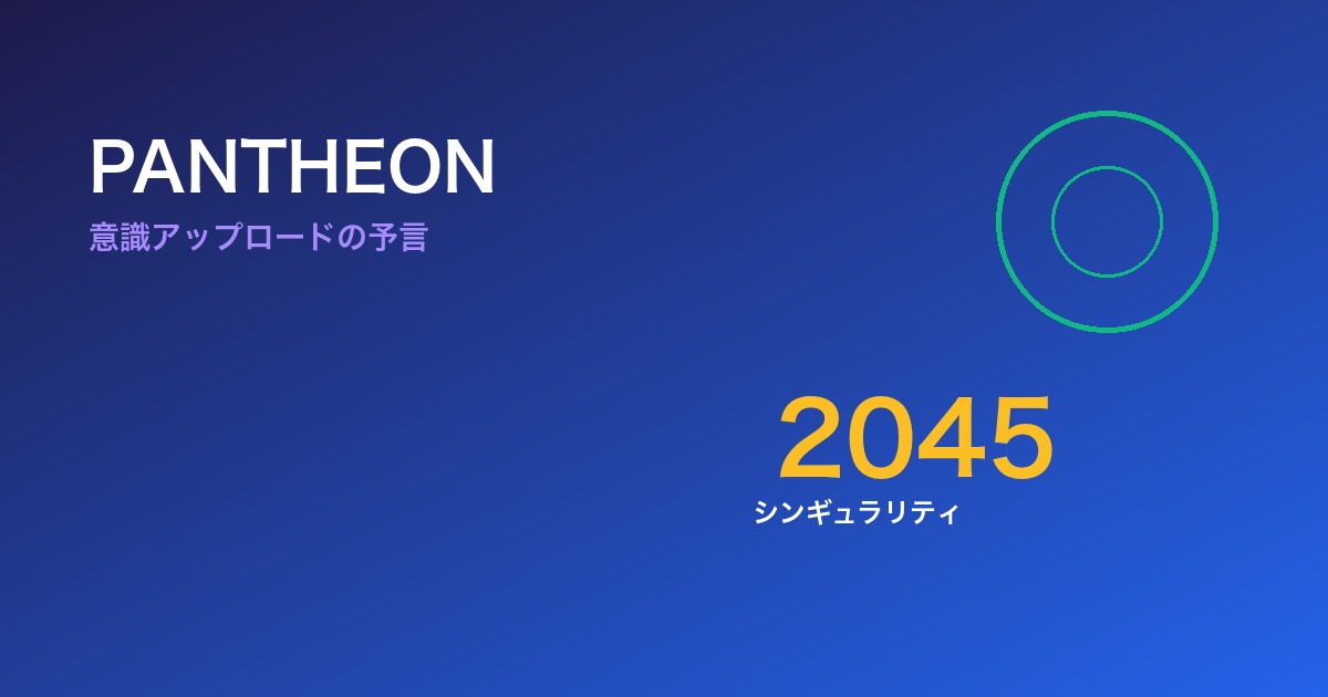 Pantheonは、 意識アップロード技術が大衆採用の直前にある世界を舞台に、人間性、個性、存在の意味を問いかけます。そしてその問いは、レイ・カーツワイルが予測する2045年のシンギュラリティと驚くほど一致しているのです。
