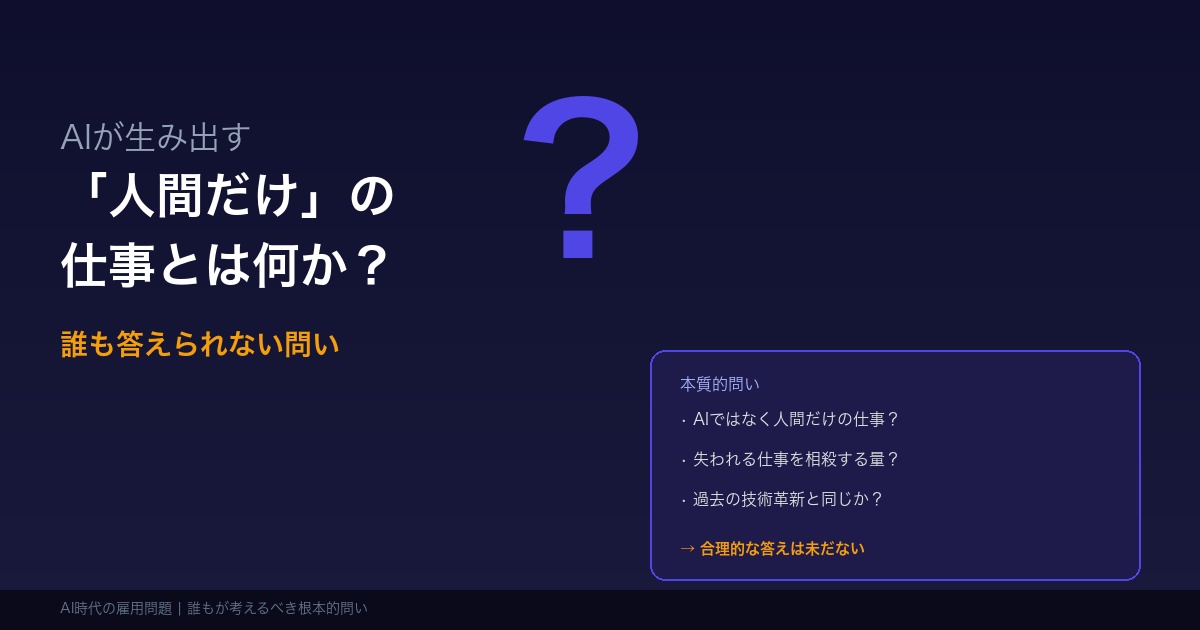 「AIは新しい仕事を生み出す」——この言葉は、AI時代の雇用問題を語る際に必ず登場します。しかし、ここに誰も明確に答えられない根本的な問いがあります。