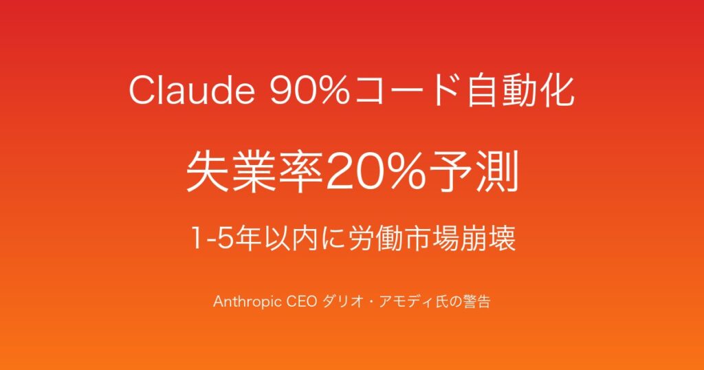 【Anthropic CEO警告】Claudeがコードの90%を記述する現実──ダリオ・アモディ氏「5年以内に失業率20%、エントリー職50%削減」労働市場激変予測