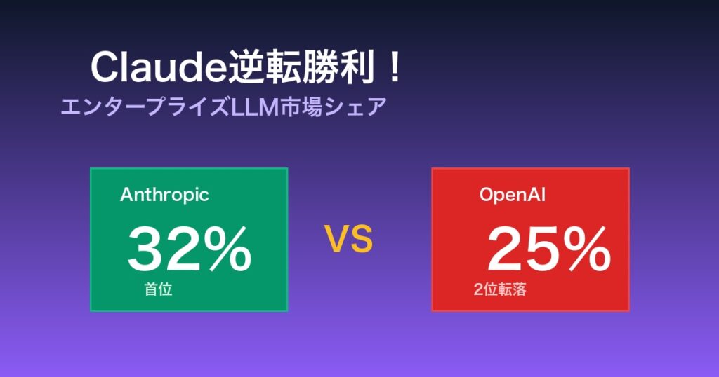 Claude逆転勝利!エンタープライズLLM市場でシェア32%首位・OpenAI抜き
