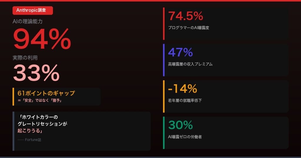 • Anthropic衝撃調査|AIの理論能力94%なのに実際の利用はたった33%