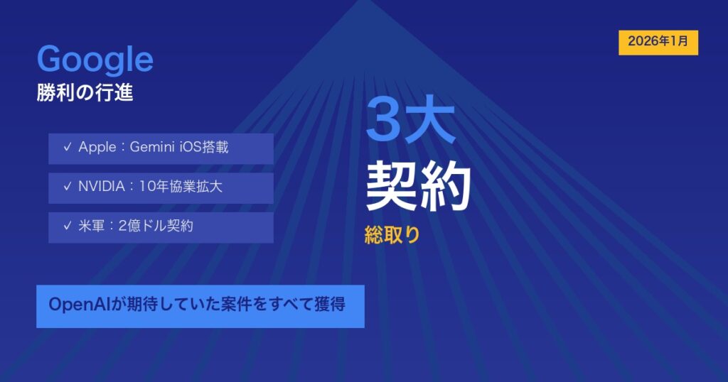 【Google勝利の行進】Apple・NVIDIA・米軍と相次ぐ大型契約|OpenAIが期待していた案件を総取り