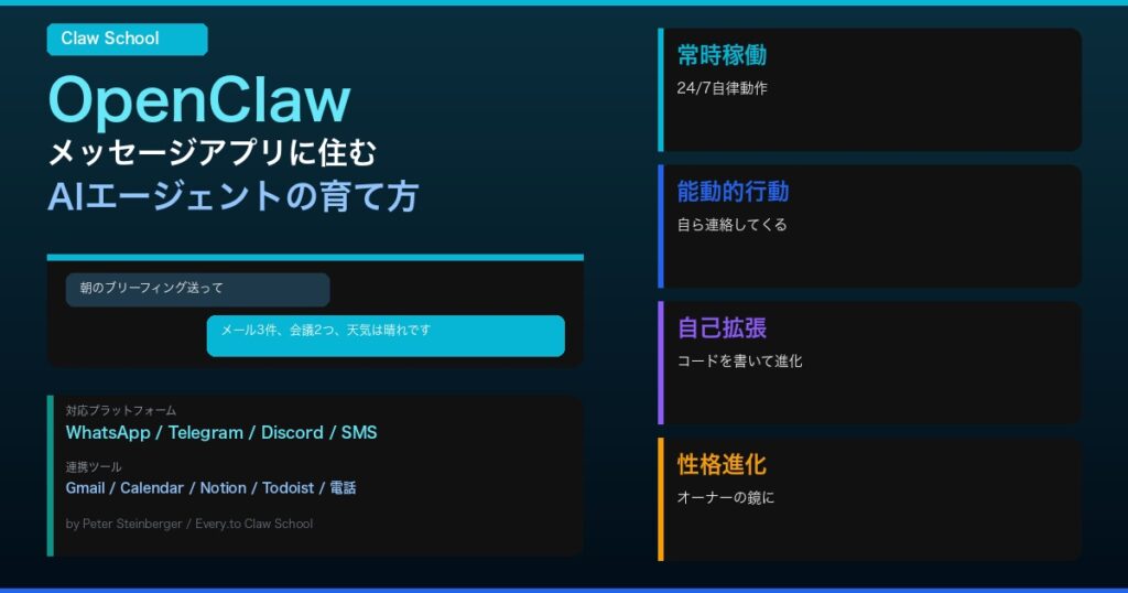 OpenClaw完全ガイド|メッセージアプリに住むAIエージェントの育て方