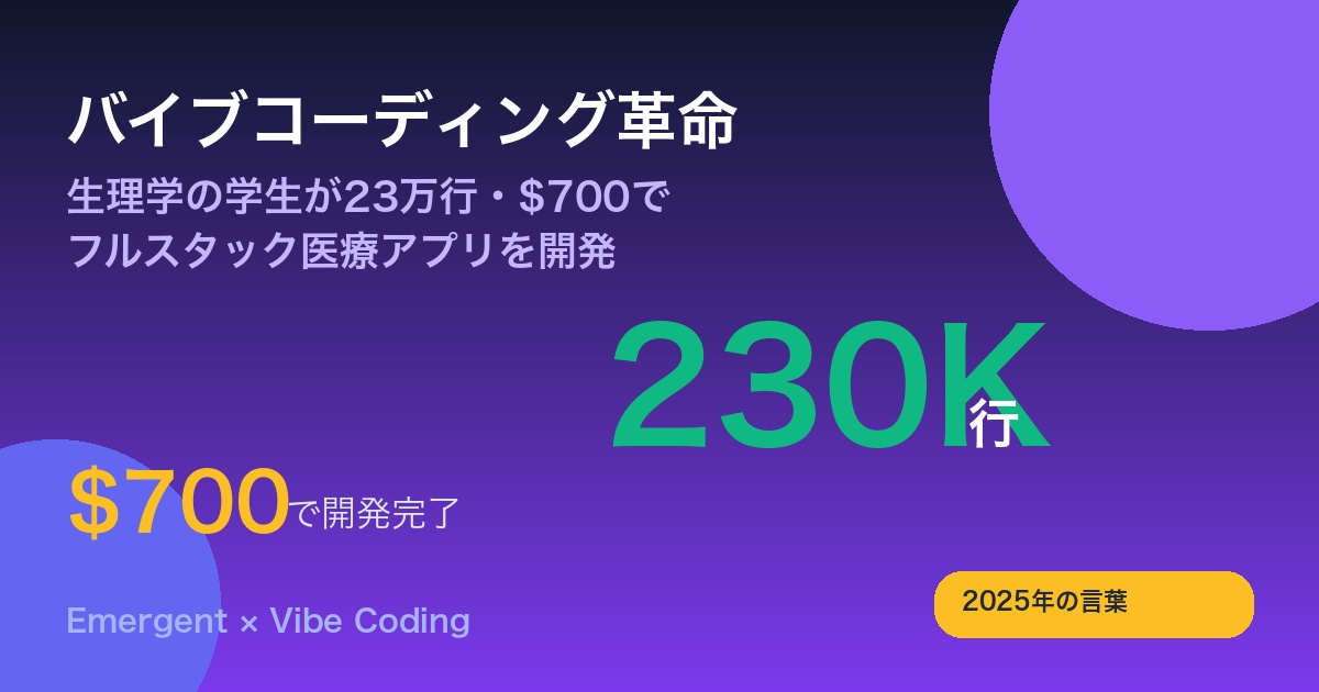 【バイブコーディング革命】生理学の学生が23万行・$700でフルスタック医療アプリを開発|Emergentで「専門家」と「エンジニア」の壁が消えた