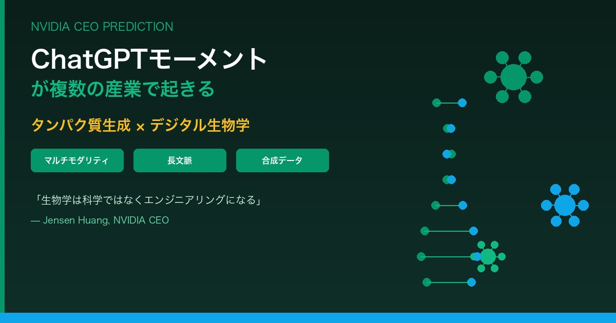 タンパク質生成の「ChatGPTモーメント」は、複数の産業に革命的影響を与える。
