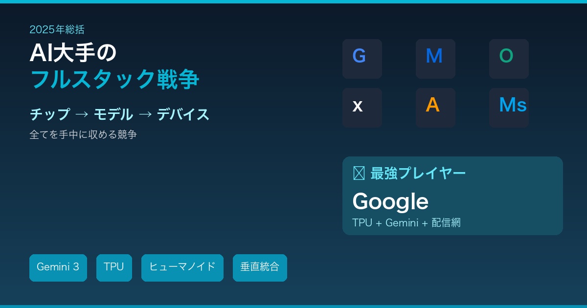 2025年のAI競争は、「誰が最も多くの層をコントロールするか」という垂直統合競争に変貌しました。
