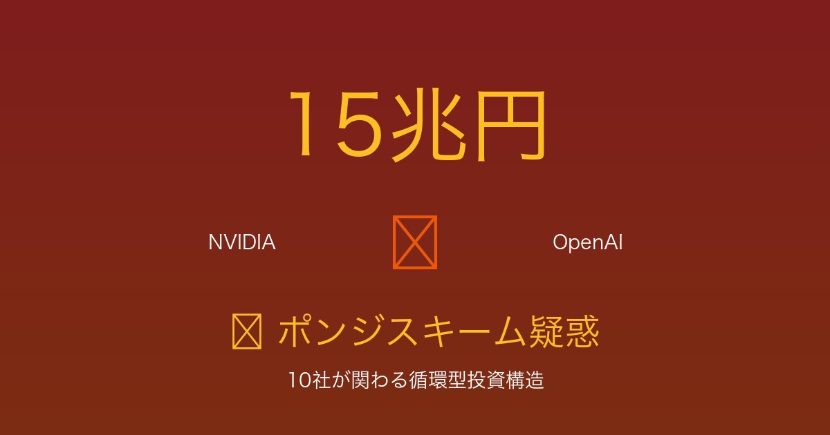 「NVIDIAがOpenAIに15兆円投資して、OpenAIがNVIDIAからGPUを購入するニュースの裏側で『ポンジスキーム』じゃん!とSNSで話題になったが、調べたら10社くらいが関わる壮大な循環型ポンジスキームかもしれないというオチ。