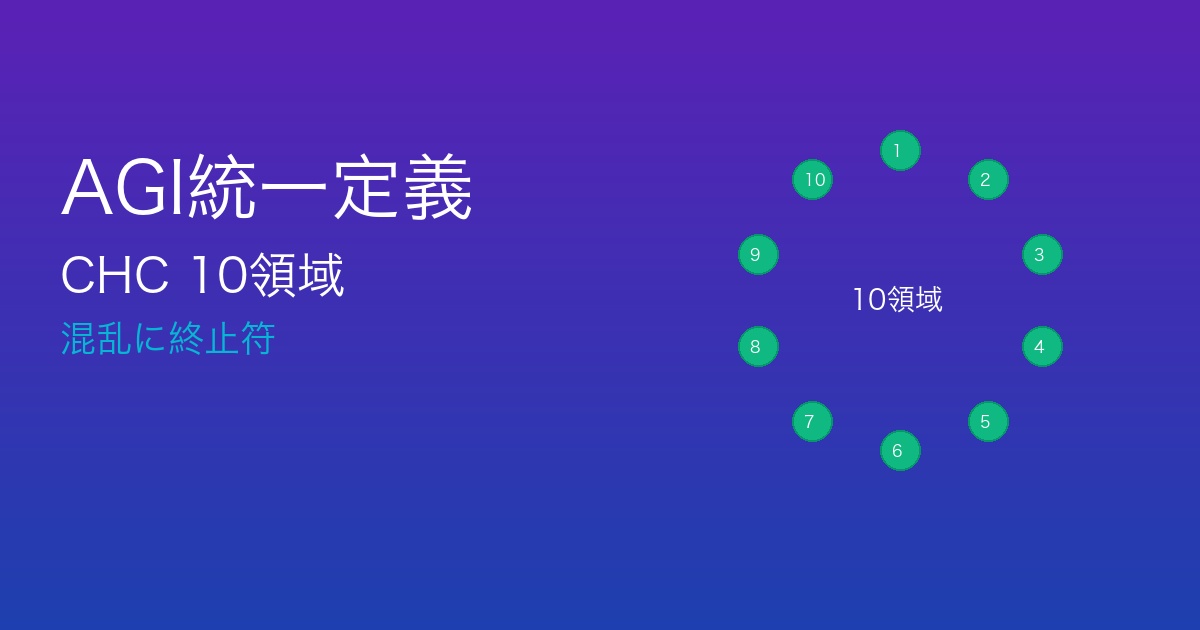しかし、2025年10月、この混乱に終止符を打つ可能性のある論文が発表されました。 CHC(キャッテル・ホーン・キャロル)モデルという心理学的枠組みに基づき、10の認知領域すべてで人間の平均レベル以上を達成することをAGIの条件とする──明確で測定可能な定義です。
