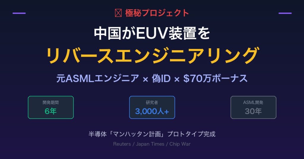 【衝撃】中国がEUV装置をリバースエンジニアリング成功|元ASMLエンジニアが極秘プロジェクトで「半導体マンハッタン計画」を実現