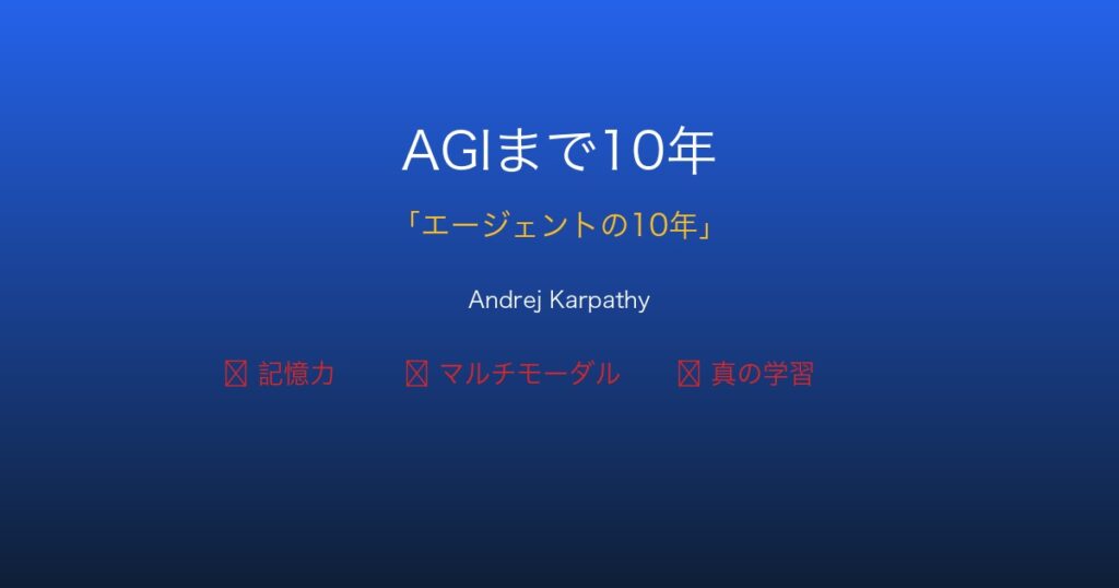 「AIエージェントは、真の従業員として機能するには程遠い。記憶力、マルチモーダル性、真の学習能力が欠けている。それを修正するには約10年かかる──不可能だからではなく、深い知能を構築するには時間がかかるからだ」 元Tesla AI責任者、OpenAI創設メン...