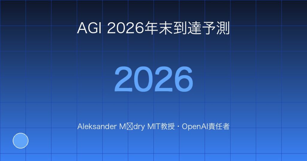 衝撃の予測:「AGIは2026年末までに達成される可能性がある」 「2026年の終わりまでに、私たちは『AGIが達成された』と宣言できるかもしれない」──この衝撃的な予測を発表したのは、MIT教授でありOpenAI Strategic Deploymentチームを率いるAleksander Mąd...