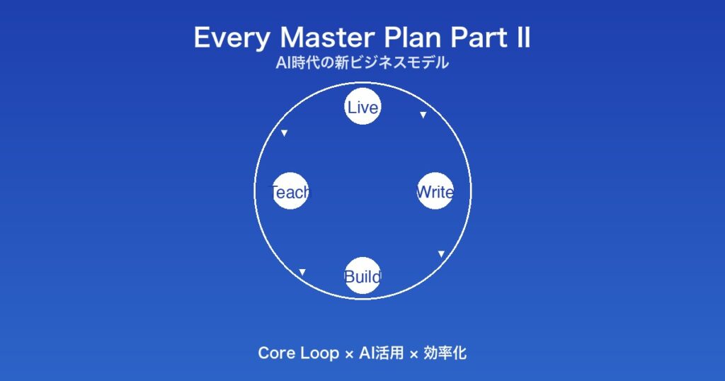 Everyが提唱するMaster Plan Part IIを徹底解説。Core Loopによる価値創造サイクル、AIを活用した効率化、4つのプロダクトエコシステムなど、次世代メディア企業の戦略を分析 -