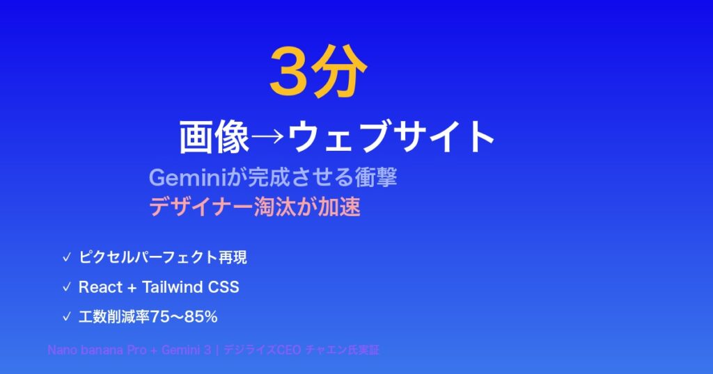 Gemini「3分」でウェブサイト完成:画像→コード生成がデザイナー淘汰を加速する衝撃