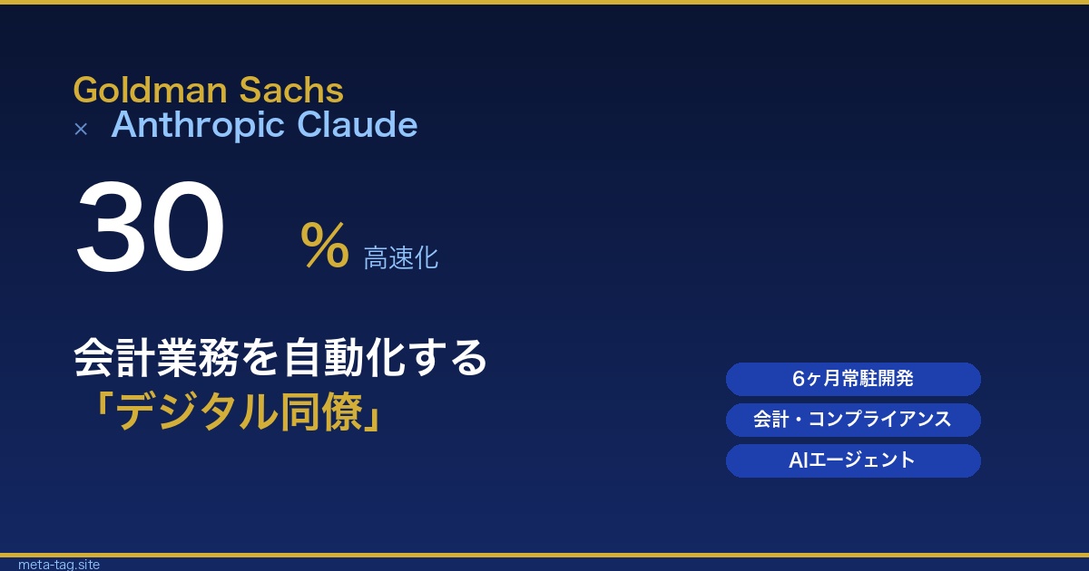 | 何が起きたか | ゴールドマンがAnthropicと6ヶ月共同開発し、会計・コンプライアンスのAIエージェントを構築 |