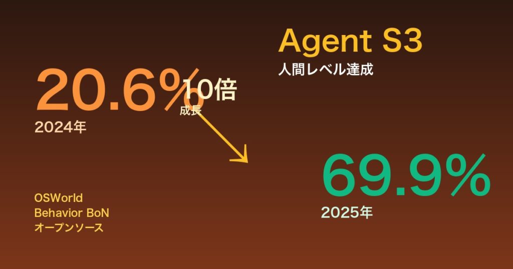 【Agent S3】人間レベル達成:1年で20%→69.9%へ性能10倍超のオープンソースAIエージェント革命