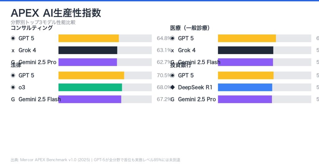 【APEX革命】Mercorが発表したAI生産性指数:GPT-5が64.2%で首位も「実務レベルには未到達」の衝撃