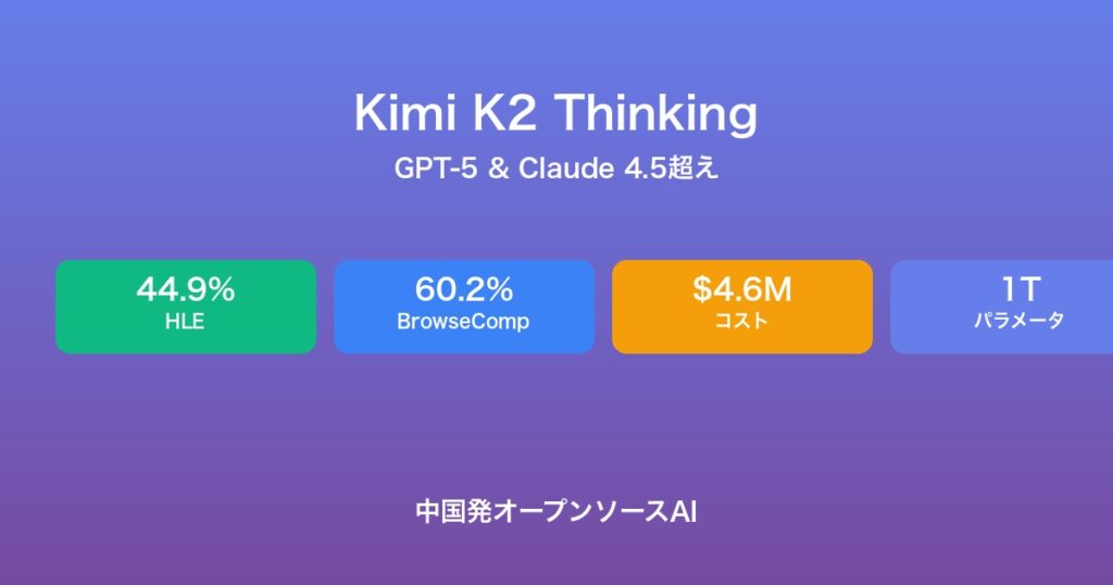 【衝撃】中国発AI「Kimi K2 Thinking」がGPT-5、Claude 4.5超え – トレーニングコストわずか460万ドルの革命